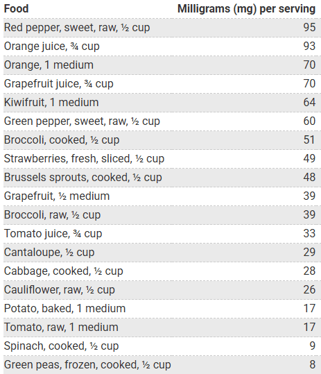 Source: National Institutes of Health Vitamin C Fact Sheet for Health Professionals 8