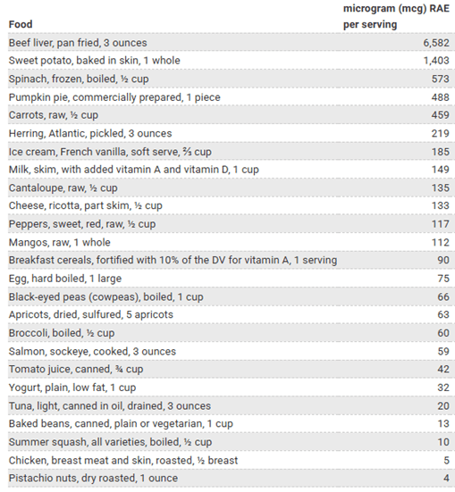 Preformed Vitamin A or retinol is found in animal products mainly including liver, fish and eggs while provitamin A sources are generally found in colourful vegetables like carrots, sweet potato and peppers (See Table 1).